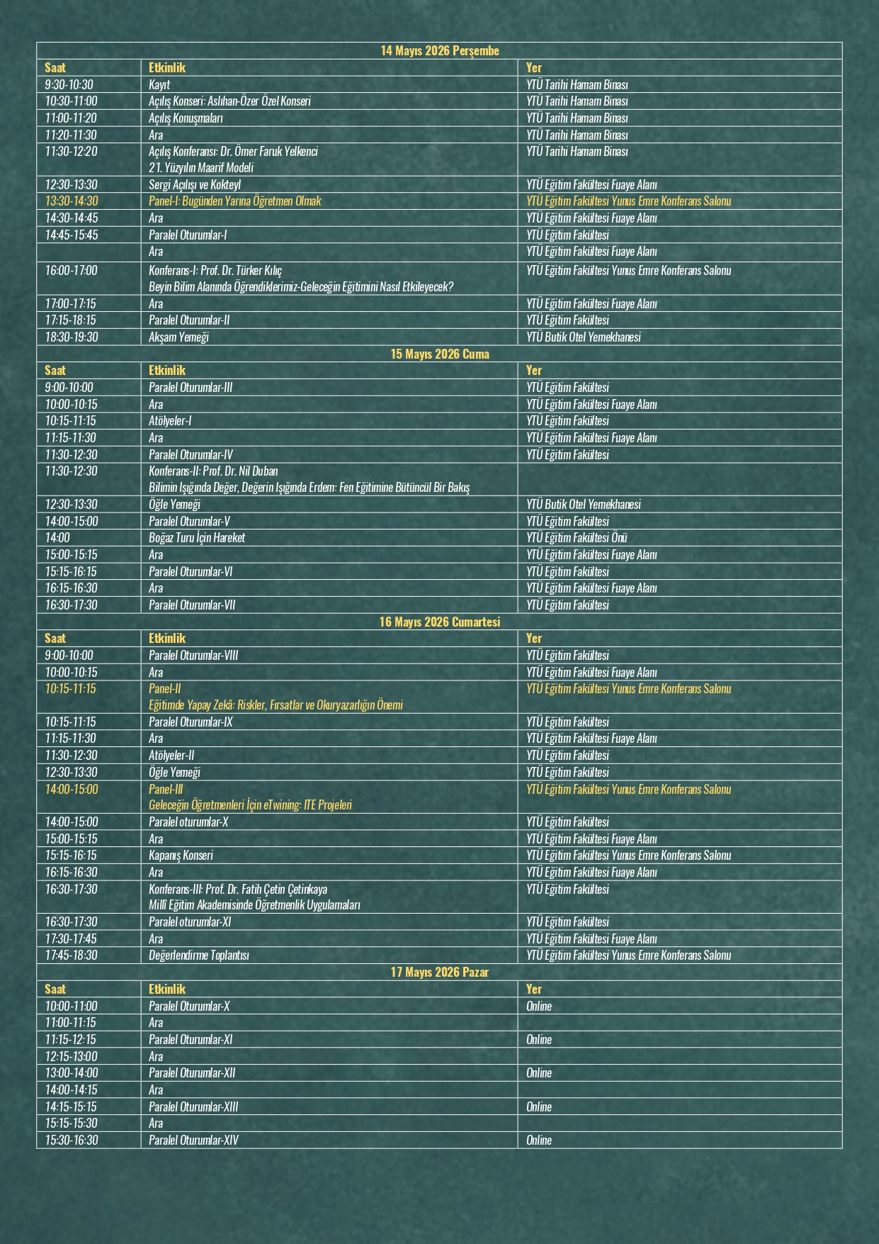 (Bildiri programı 1 Mayıs tarihinde ilan edilecektir.)